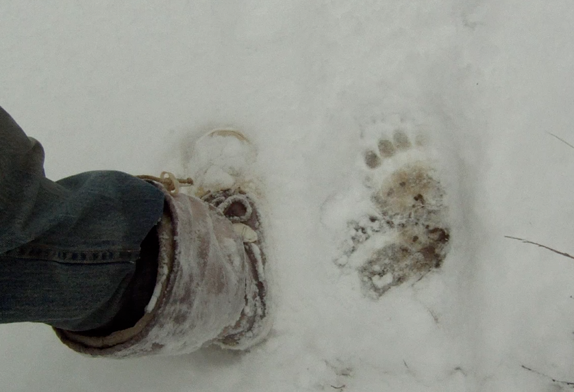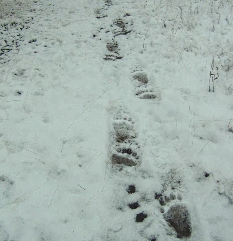 My walk this day had me just a few hours behind the Invisible Bear. His path crossed mine in three separate locations. My route tends to zig-zag mainly in the north-south direction. The Invisible Bear was heading straight west, cutting across my path as I followed.