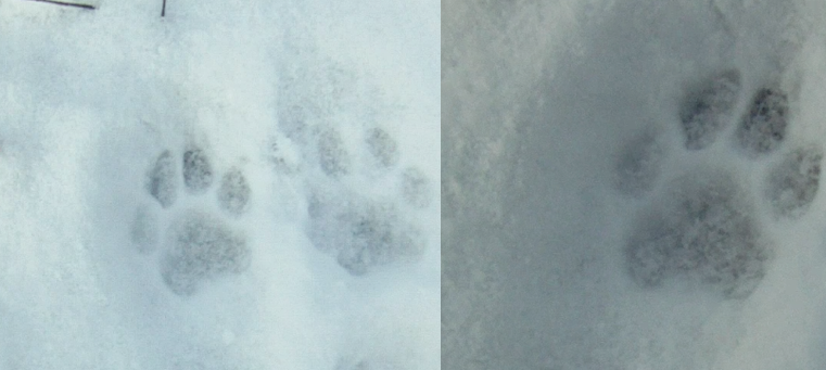I didn’t post yesterday… with good reason. After my post Tracking the Invisible Bear in which Black Bear cut a very direct path toward his western denning site, I was surprised to learn that the very next day he had backtracked. He laid a new series of footprints right on top of mine, following my path for nearly a kilometre.