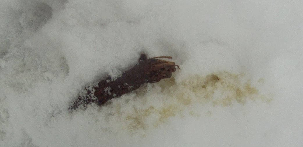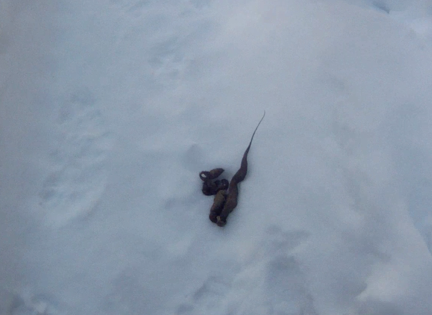 Don’t you just love today’s pictures? Now that’s a healthy, foxy poop! This picture was obtained several days after the previous one. You can practically see digested mice smiling up from the styled heap!
